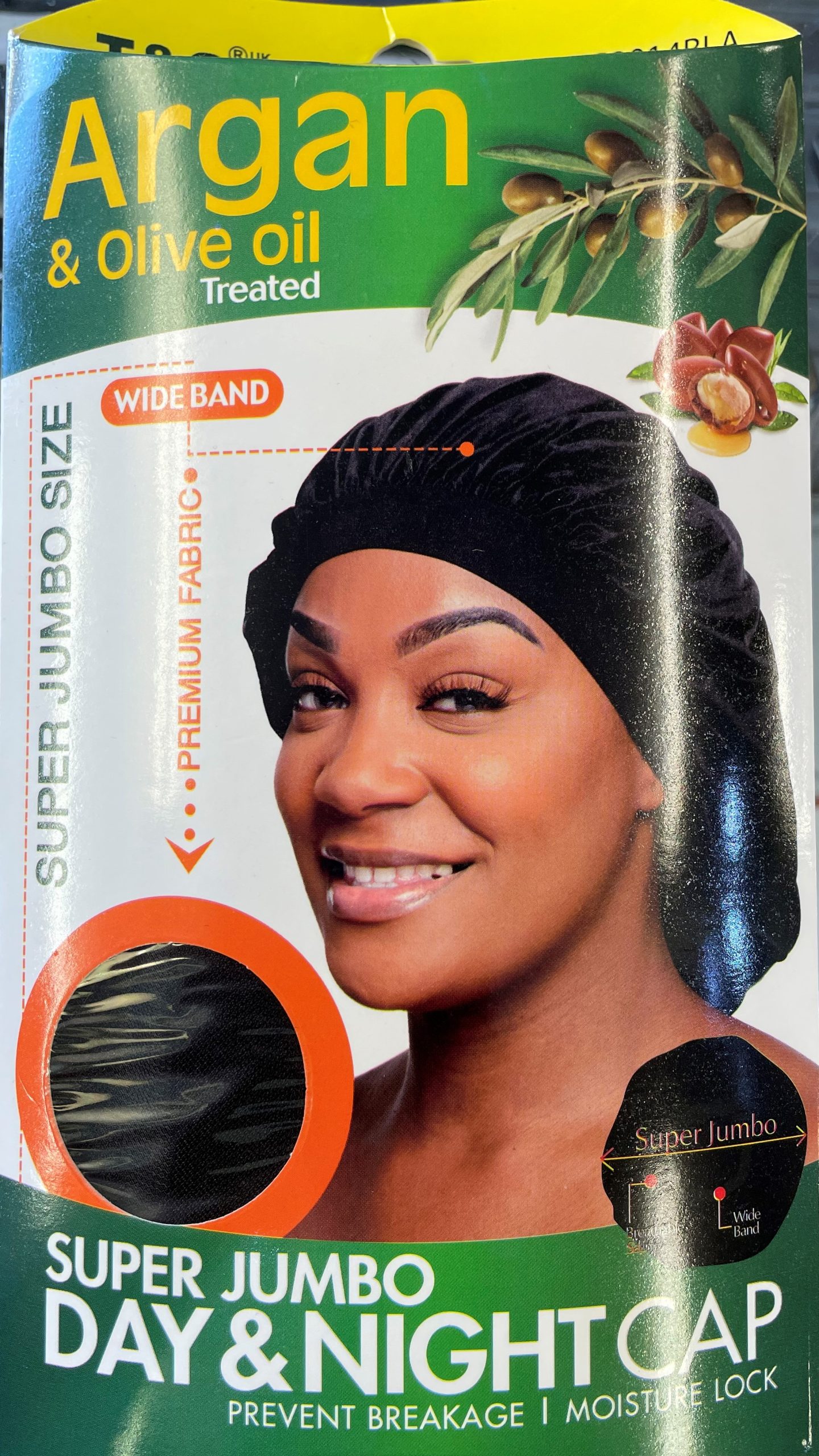Magic Collection Organic Argan Oil Day and Night Cap is Super Jumbo Size For The Right Fit . Breathable and Comfortable Satin Material. Use with Rollers Or Large Hair Styles . Great For Long Hair. Treated with Organic Argan Oil.